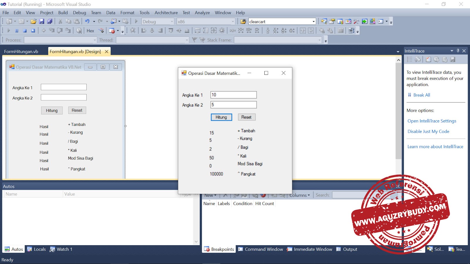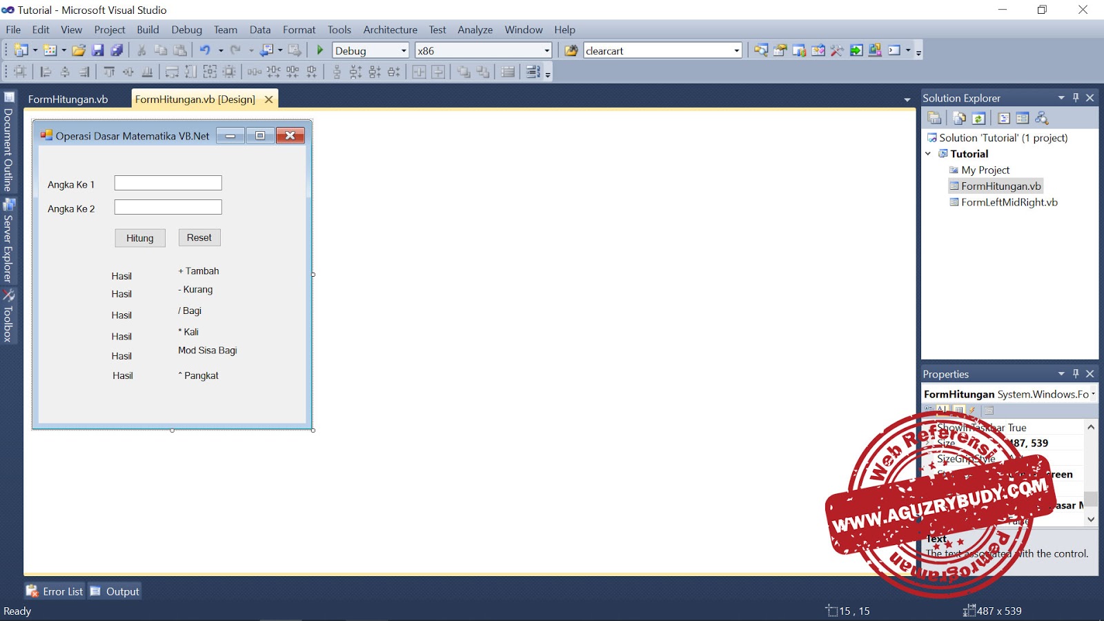Tutorial hitungan dasar matematika di VB.Net.