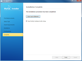 MySQL Langkah 9 - Instalasi Selesai: instalasi selesai. Klik tombol Selesai untuk menutup panduan instalasi dan meluncurkan MySQL Workbench.