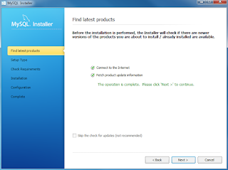 Instal MySQL Langkah 3 - Unduh produk MySQL terbaru: Pemasang MySQL memeriksa dan mengunduh produk MySQL terbaru termasuk server MySQL, MySQL Workbench, dll.