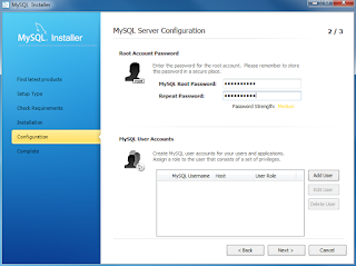 Instal MySQL Langkah 8.1 - Konfigurasi Server MySQL: pilih kata sandi untuk akun root. Harap catat pengunduhan kata sandi dan simpan dengan aman jika Anda menginstal server database MySQL pada server produksi. Jika Anda ingin menambahkan lebih banyak pengguna MySQL, Anda bisa melakukannya di langkah ini.